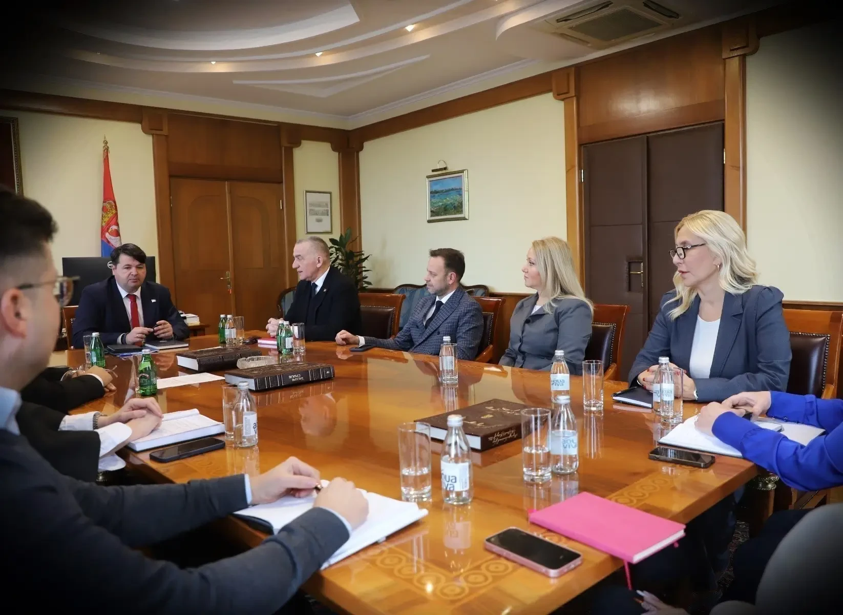 Председник Уставног суда др Владан Петров и судије Уставног суда Јелена Деретић, Маја Поповић, др Михајло Рабреновић и др Милан Рапајић састали су се данас, у Уставном суду, са министром правде Ненадом Вујићем.